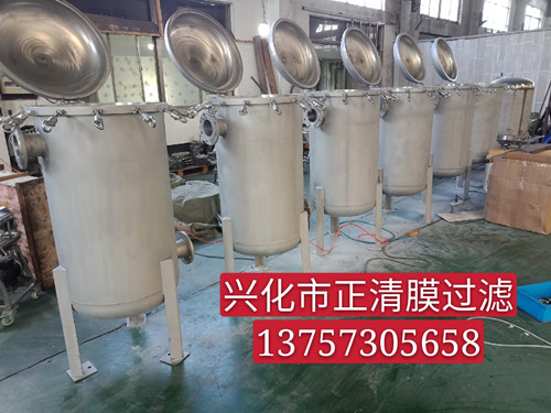 不銹鋼袋式過濾器(機),是一種壓力式過濾裝置,主要有過濾筒體、過濾筒蓋和快開機構(gòu)、不銹鋼濾袋加強網(wǎng)等主要部件組成,濾液由過濾機外殼的旁側(cè)入口管流入濾袋,濾袋本身是裝置在加強網(wǎng)籃內(nèi),液體滲透過所需要細(xì)度等級的濾袋即能獲得合格的濾液,雜質(zhì)顆粒被濾袋攔截。該機更換濾袋十分方便,過濾基本無物料消耗。