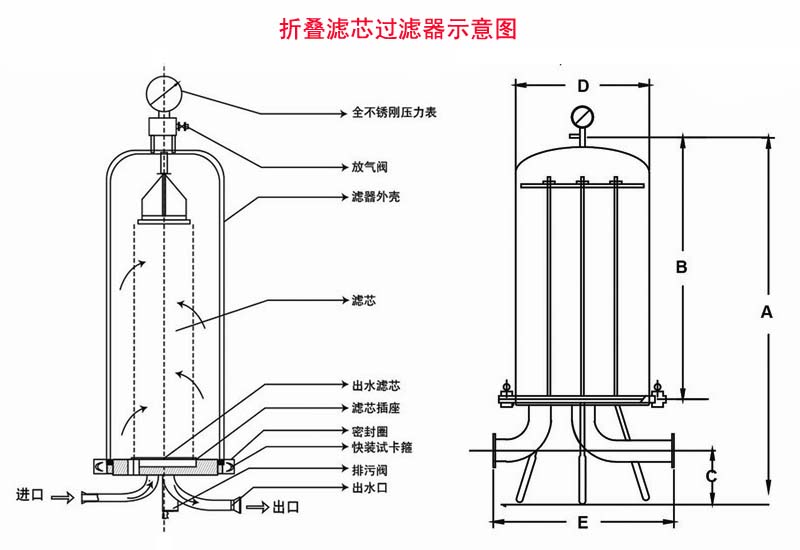 微孔折疊式過濾器,圓柱體結構,由SUS316L 或SUS304 全不銹鋼制成,以折疊式濾芯為過濾元件,可以過濾液體、氣體、0.1um 以上的微粒和細菌,過濾精度高、過濾速度快、吸附少,無介質脫落,不泄漏、耐酸堿、耐腐蝕,清洗方便,可帶反沖功能等優(yōu)點,是生物醫(yī)藥純水、飲料、生化水處理、環(huán)保等行業(yè)的理想過濾設備。