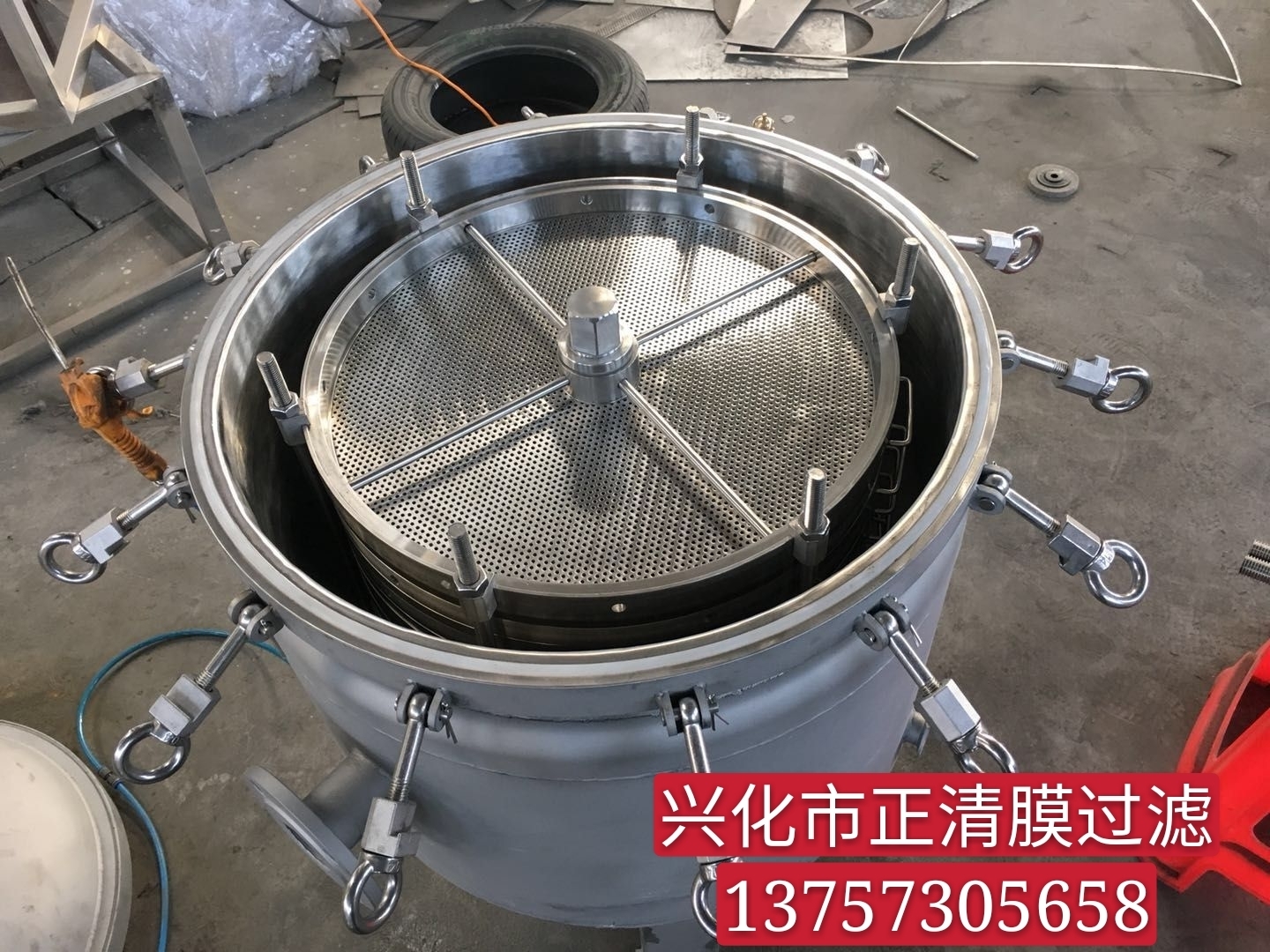 本設(shè)備經(jīng)我公司多年來生產(chǎn)過濾設(shè)備的實踐經(jīng)驗制造而成, 保溫加熱層疊式過濾器,采用SUS316L和SUS304優(yōu)質(zhì)不銹鋼材料制造,工藝制作精良,性能安全穩(wěn)定,抗腐蝕,經(jīng)久耐用,結(jié)構(gòu)新穎,操作簡便,靈活節(jié)能,適應性強的多用途過濾設(shè)備。 過濾器內(nèi)殼體與底盤形成封閉的內(nèi)腔體,內(nèi)腔體內(nèi)有液體過濾裝置,穿過底盤的兩個原液體進入口和一個合格液排出口均與內(nèi)腔體相連,過濾裝置包含多層重疊的過濾網(wǎng)板,將內(nèi)腔體分成原液腔和合格液腔,原液進入口與原液腔連通,合格液排出口與合格液腔連通。本機具有單位空間內(nèi)液體過濾面積大、速度快、流量大、效率高的特點。 保溫加熱層疊式過濾器,內(nèi)過濾裝置是由多層重疊過濾網(wǎng)板組成,可根據(jù)用戶需要的流量大小選擇過濾機的規(guī)格,還可以根據(jù)用戶的要求特制液體在保溫狀態(tài)下的不同規(guī)格的過濾機,同時,本廠還為用戶提供配套泵和不配套泵兩種過濾機的選擇。過濾機和泵安裝在移動平臺上,清洗后可異地過濾其他液體,一機多用。 另外,保溫加熱層疊式過濾器,針對化工、制藥、精細食品、生物化工、環(huán)保等行業(yè)在液體過濾中,某些液體固態(tài)顆粒雜質(zhì)含量較高,如頻繁沖洗勢必影響生產(chǎn)周期和效率的情況。也可為用戶設(shè)計增大過濾機腔內(nèi)容積,使得在原液過濾中能夠按要求容納更多的固態(tài)顆粒雜質(zhì),正常生產(chǎn)。